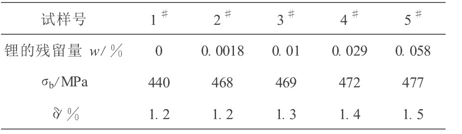 将微量锂加入工业纯铜中, 由于锂在铜中固溶, 造成铜的晶格发生畸变, 从而提高硬态铜丝的相关力学性能。