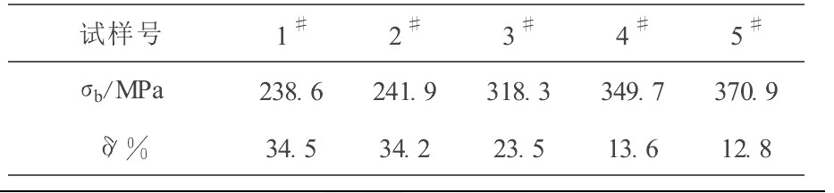 对各号丝材按拉伸试样标准取样, 在国产 LJ-1000 型材料试验机上测定其拉伸性能。