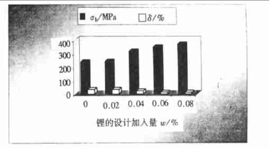 。当位错在外力作用下运动, 经过该畸变区时, 由于畸变能的作用而受到阻碍, 必须施加更大的外力才能克服这一畸变阻力, 从而使合金得到强化。由于锂的加入量极少, 故强化效果不是太明显。