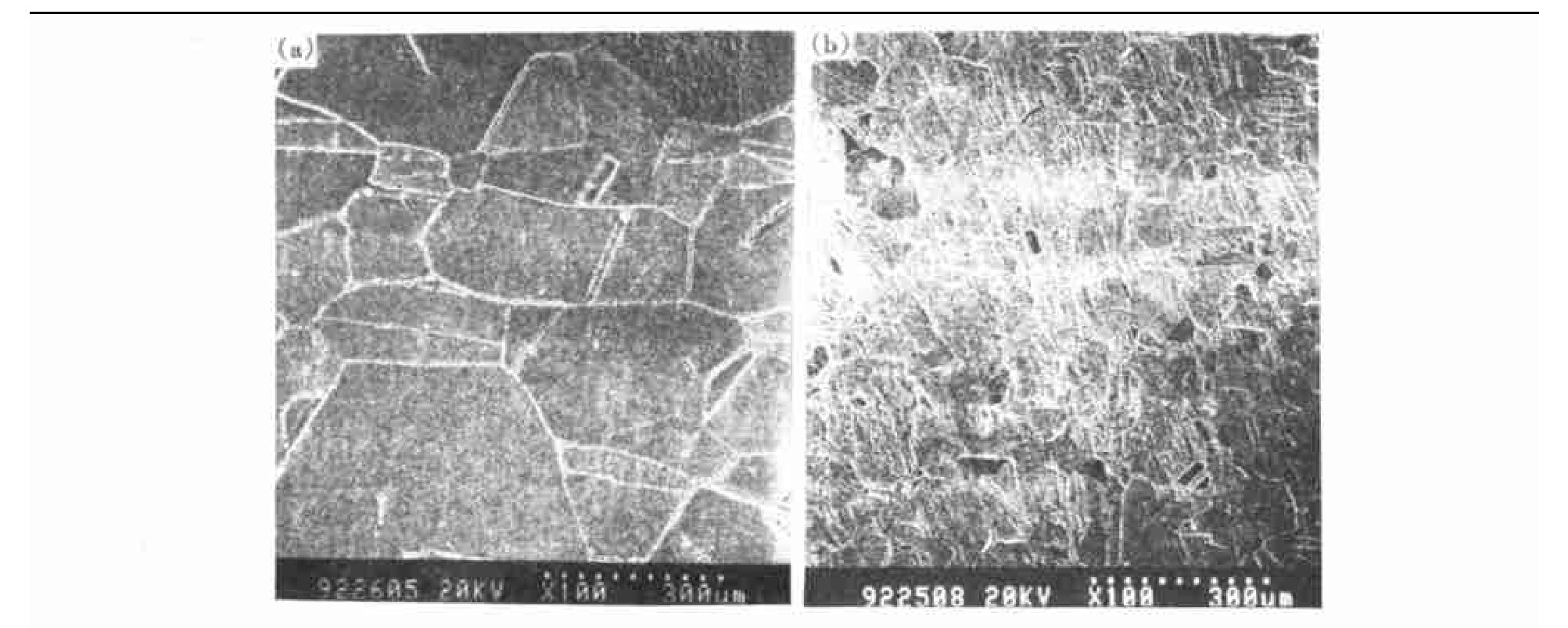 (a) 未加锂的工业纯铜; (b) 加了锂的工业纯铜