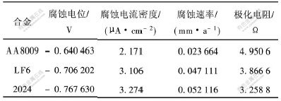 表 2   AA8009, LF6和2024合金的极化电阻与塔菲尔拟合数据