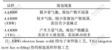 表 3   AA8009合金及其焊件的腐蚀试样现象