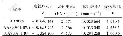 表 4   AA8009合金及其焊件的极化电阻与塔菲尔拟合数据