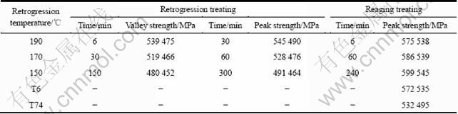 Table 1 Peak and valley strengths and corresponding time at different retrogression temperatures in RA- or RRA-treating