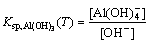 2) 三水铝石和拜耳石的饱和浓度可通过式(3)求得: