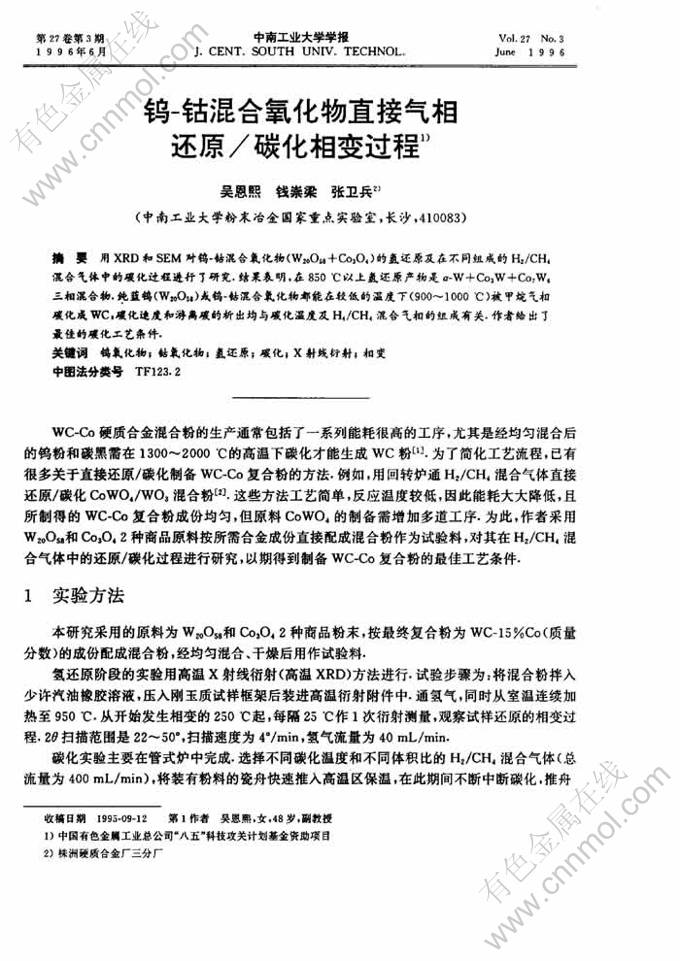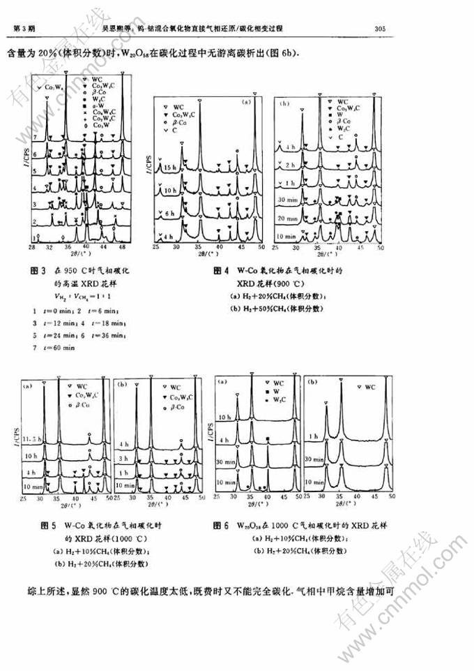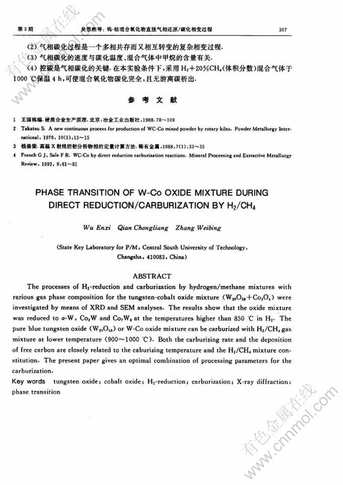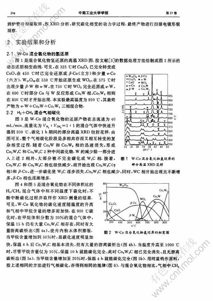 Key words:tungsten oxide; cobalt oxide; H2-reduction; carburization; X-ray diffraction; phase transition