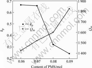 Fig.6 Variation of kp and Qm of PMS-PZT ceramics with content of PMS