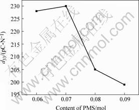Fig.7 Variation of d33 of PMS-PZT ceramics with content of PMS