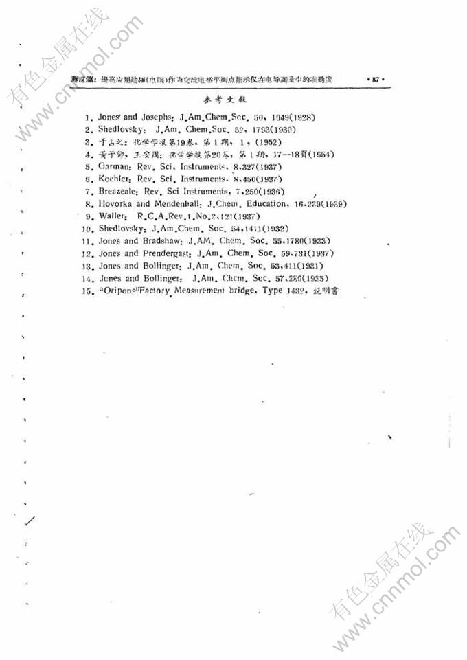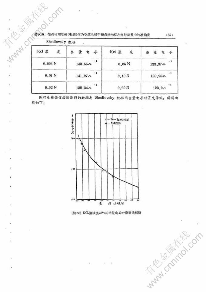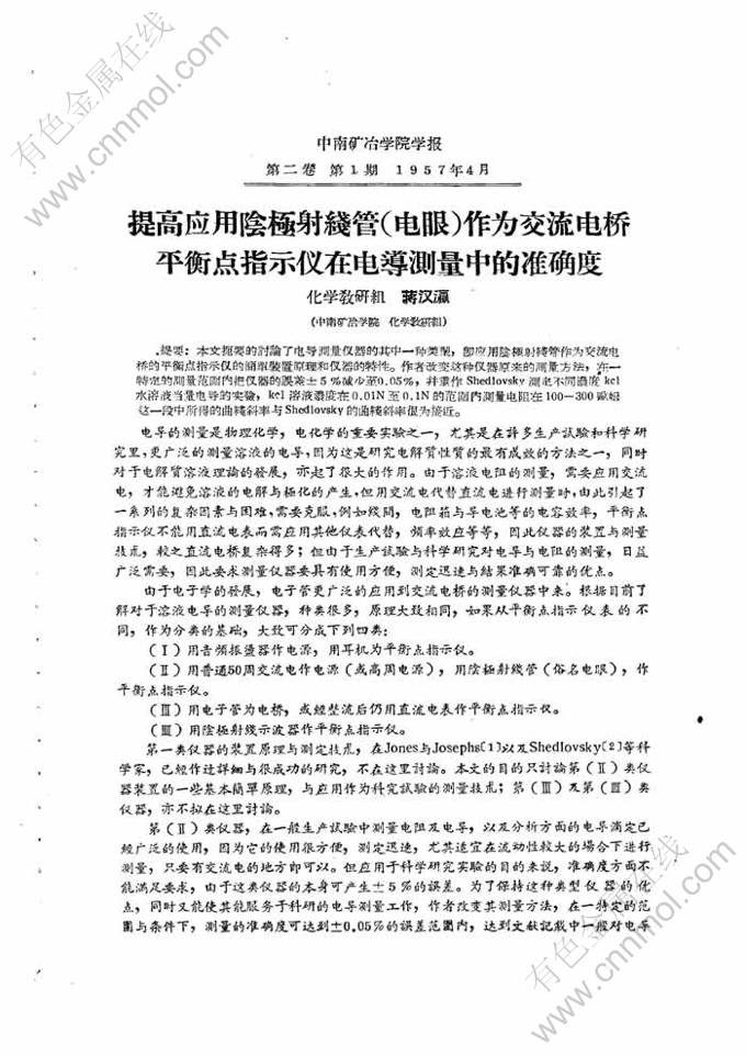 关键词:交流电桥平衡; 阴极射线管; 准确度; 指示仪; 电导测量; 当量电导; 平衡点; 电导池常数; 不同浓度; 曲线斜率