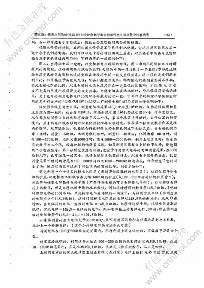 提高应用阴极射线管(电眼)作为交流电桥平衡点指示仪在电导测量中的准确度