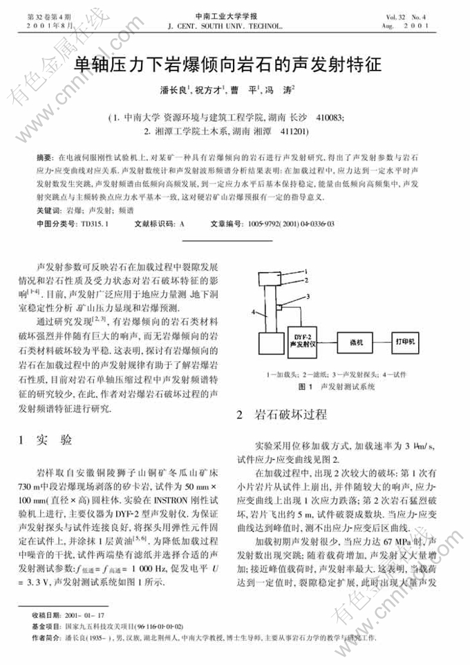 论文作者:潘长良 祝方才 曹平 冯涛