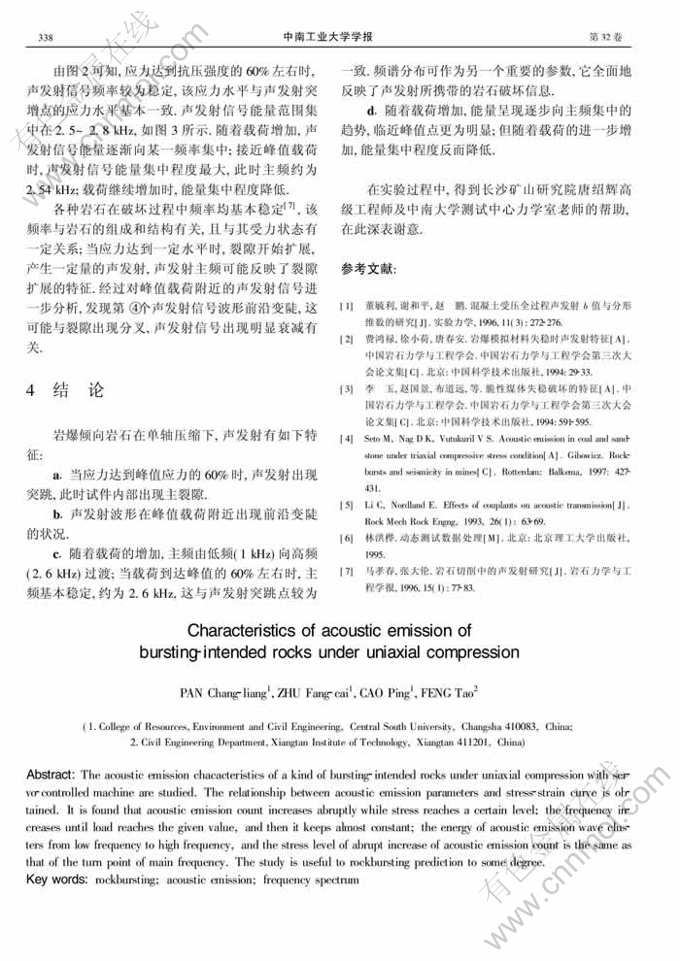 关键词:岩爆;声发射;频谱