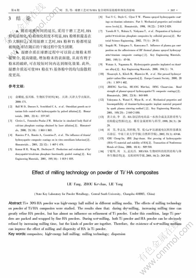 Key words:composites; high-energy ball milling; milling technology; dispersion