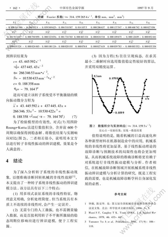 转子系统非线性振动的辨识建模