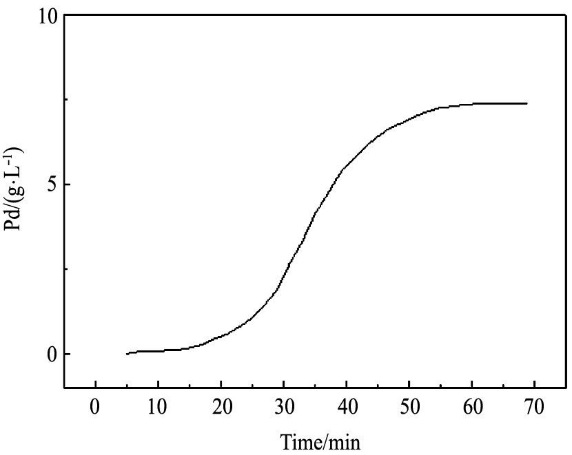 从表面形貌观察来看: 基体表面的半球状钯晶粒随镀膜时间增长而逐渐生长, 钯晶粒持续长大, 彼此相切时开始生成平整致密, 覆盖均匀的膜层。 根据实验现象, 反应速率可概括为成核时反应缓慢, 晶粒长大时反应剧烈, 晶粒彼此相切铺满后反应速率迅速下降, 直到反应不再进行。 可以用如图5的反应趋势图对钯膜沉积过程加以概括。