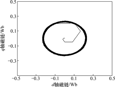 永磁同步电机的直接转矩,通过控制输入的转矩和定子磁链控制,而不能直接控制id和iq。但在实际控制中,在很多情况下要求能够实现某些特定的最优控制,如在恒转矩运行时进行的最大转矩电流比控制。而采用的定子磁链幅值恒定的控制准则不能满足要求,这时,定子磁链应该由满足这种控制要求的定子电流id和iq来确定。对于隐极式永磁同步电机,不存在凸极效应,若使单位定子电流产生的转矩最大,则应控制id为0 A,需要得到对应的id为0 A时的定子磁链指令[11]。