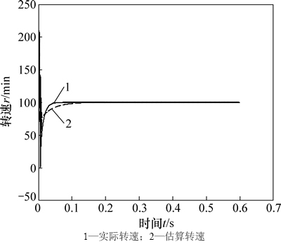 由式(21)的自适应律可以得出估算转速,替代了使用速度传感器得到的转速。