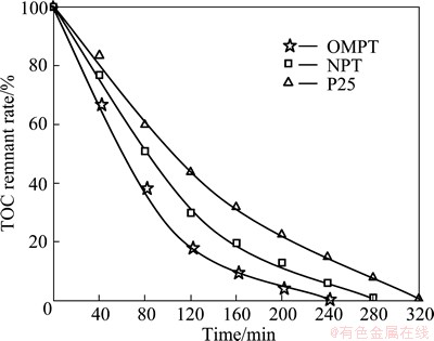Fig. 7 TOC remnant rate of MB in photocatalytic degradation process