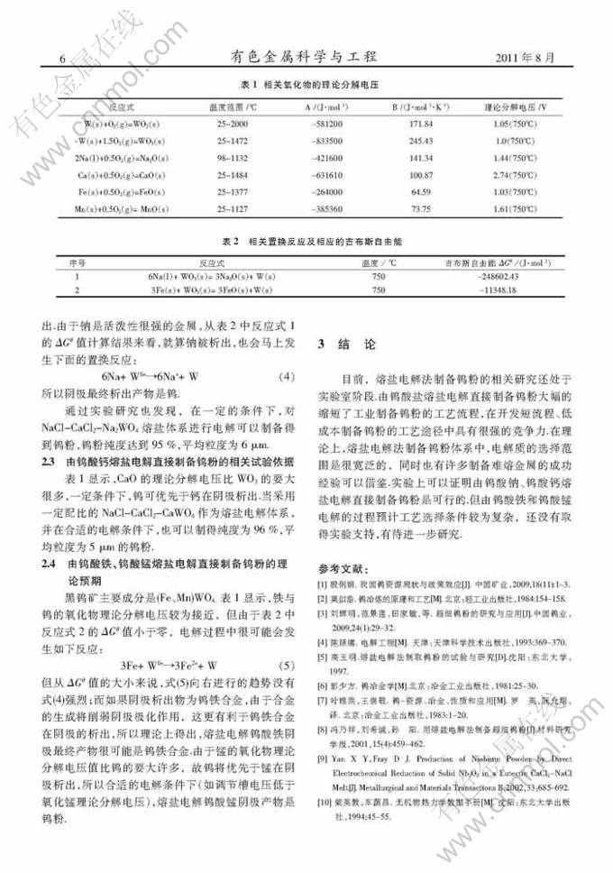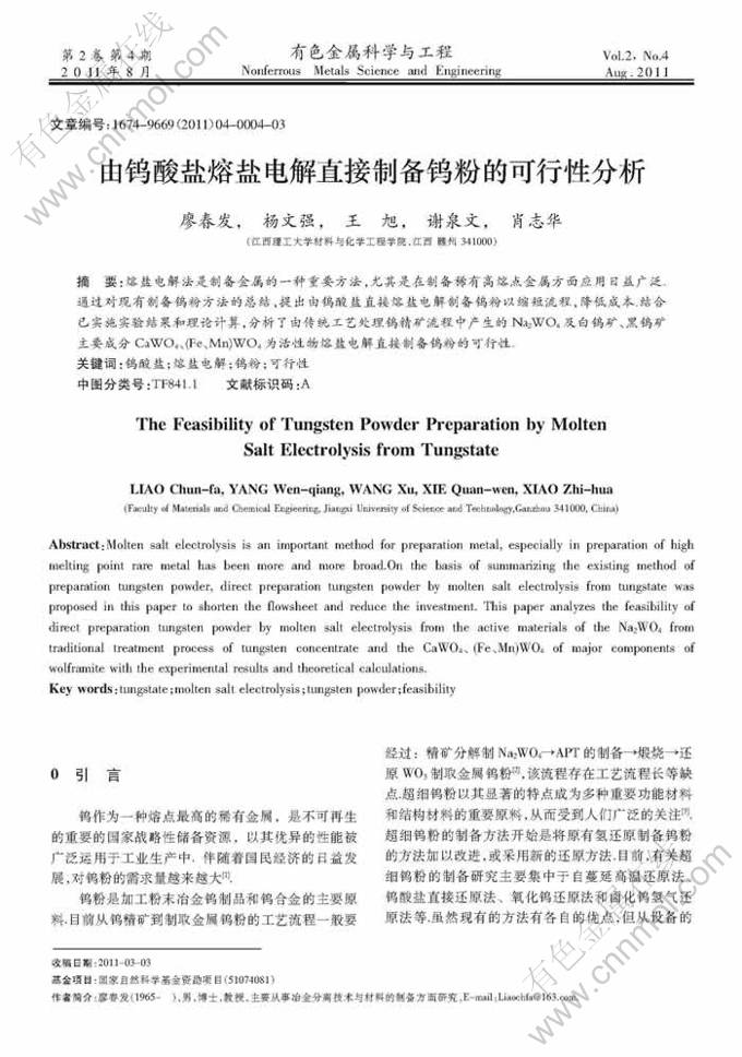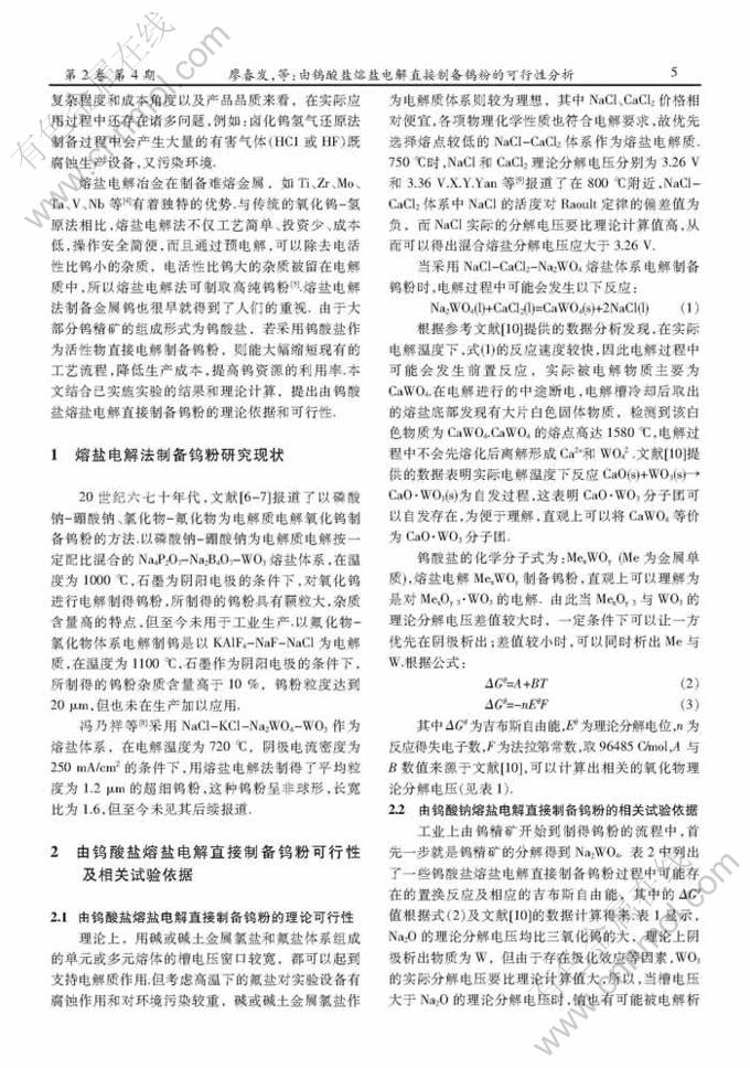 关键词:钨酸盐;熔盐电解;钨粉;可行性