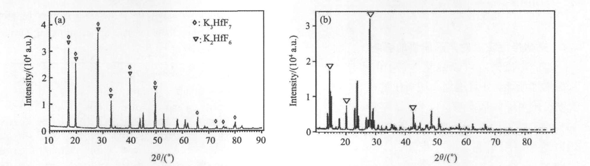Fig.2 XRD diagram of K2 HfF6 prepared by different methods (a) HF dissolving method; (b) K2 SiF6 sintering method
