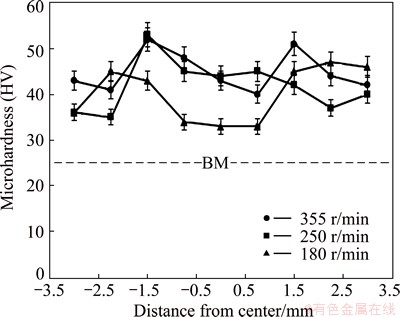 Fig. 7 Microhardness profiles of BM and produced wires