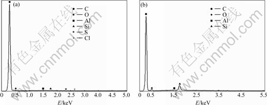 Fig.3 EDS spectra of natural graphite (a) and modified graphite (b)