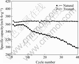 Fig.5 Cycling behavior of natural graphite and treated graphite