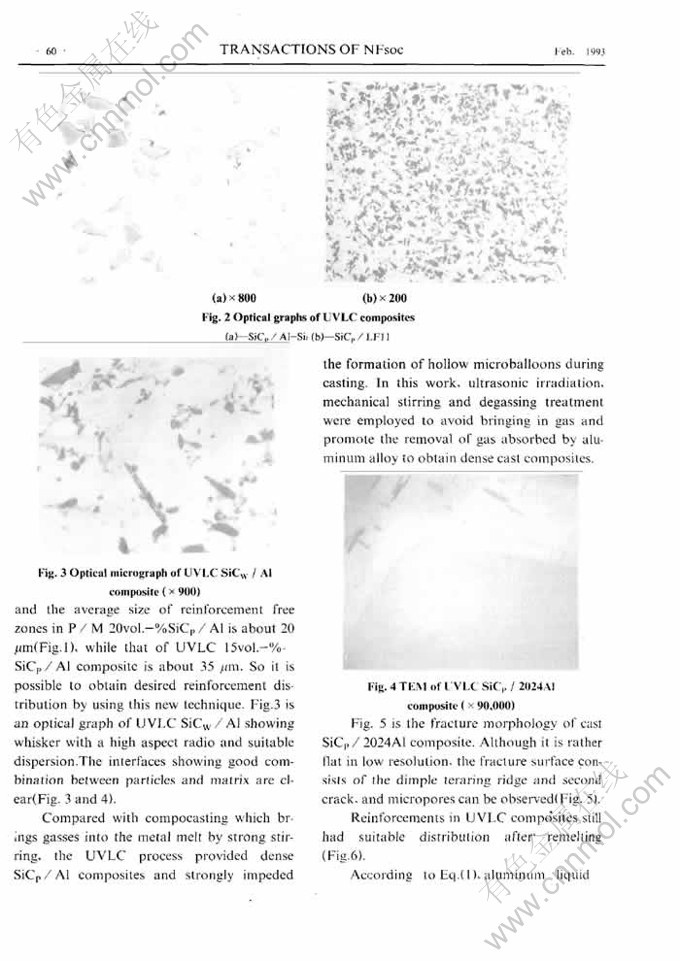 ULTRASONIC VIBRATION LIQUID CAST SiCw/Al AND SiCp/Al COMPOSITES