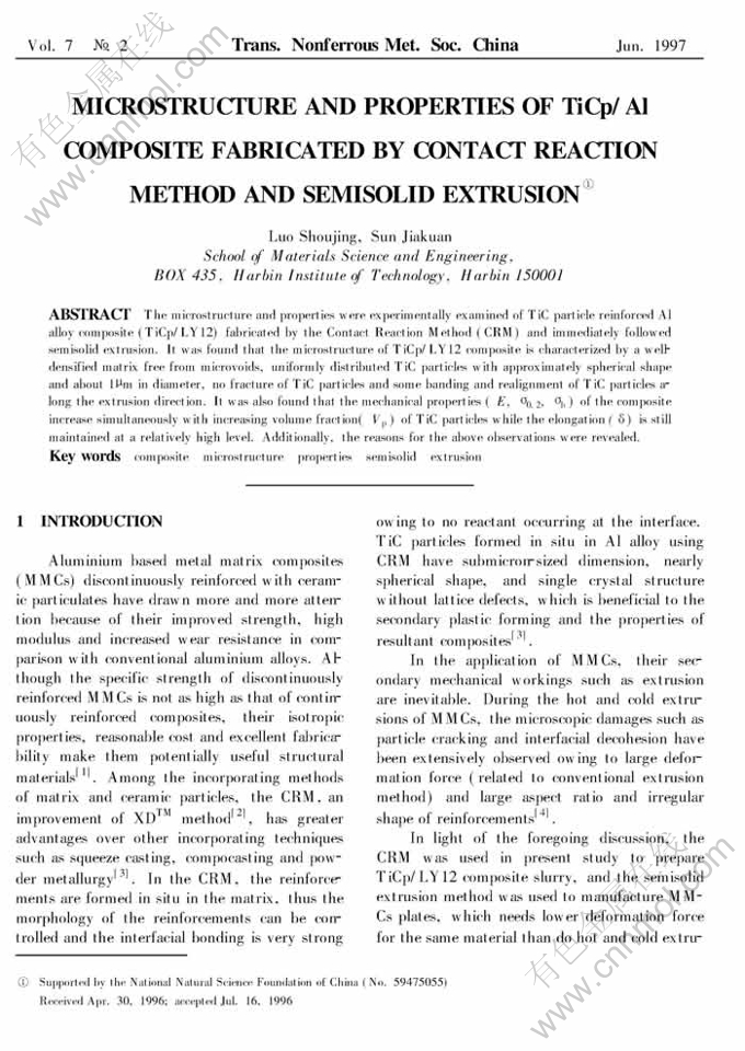 来源期刊:中国有色金属学报(英文版)1997年第2期