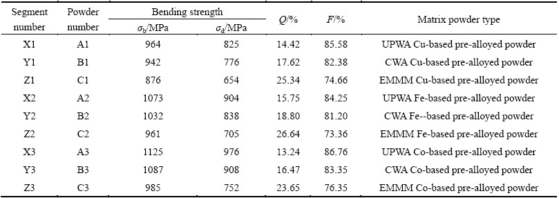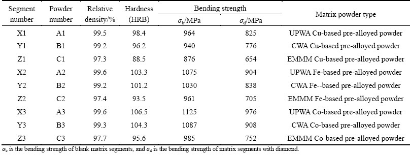 Table 4 lists the mechanical properties of sintered segments of Cu-based pre-alloyed powder prepared by UPWA, CWA and EMMM methods under the same composition recipe and sintering conditions.