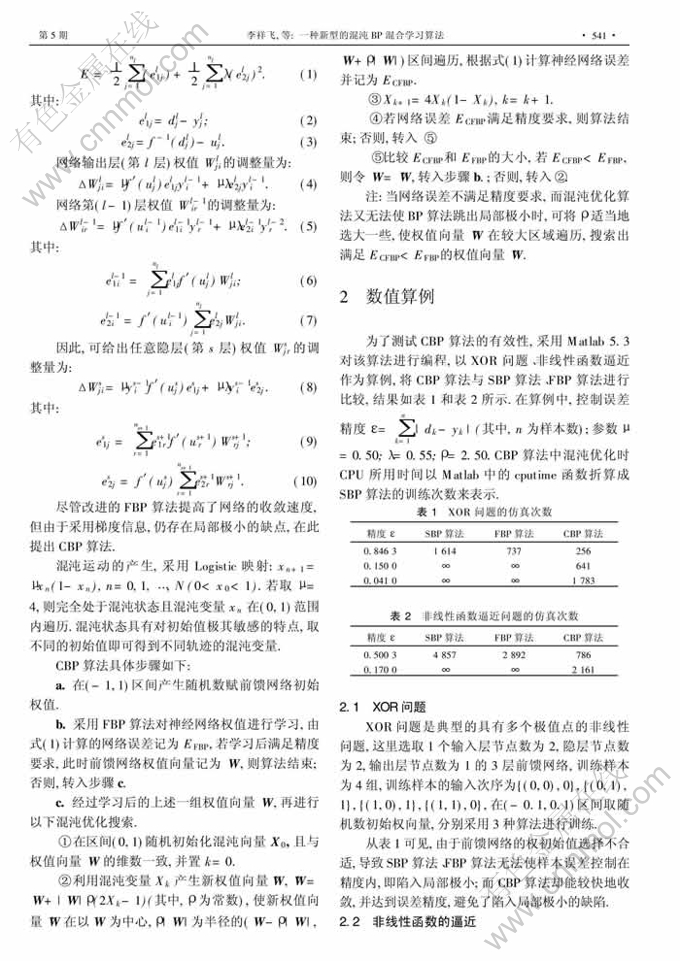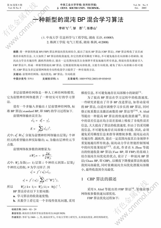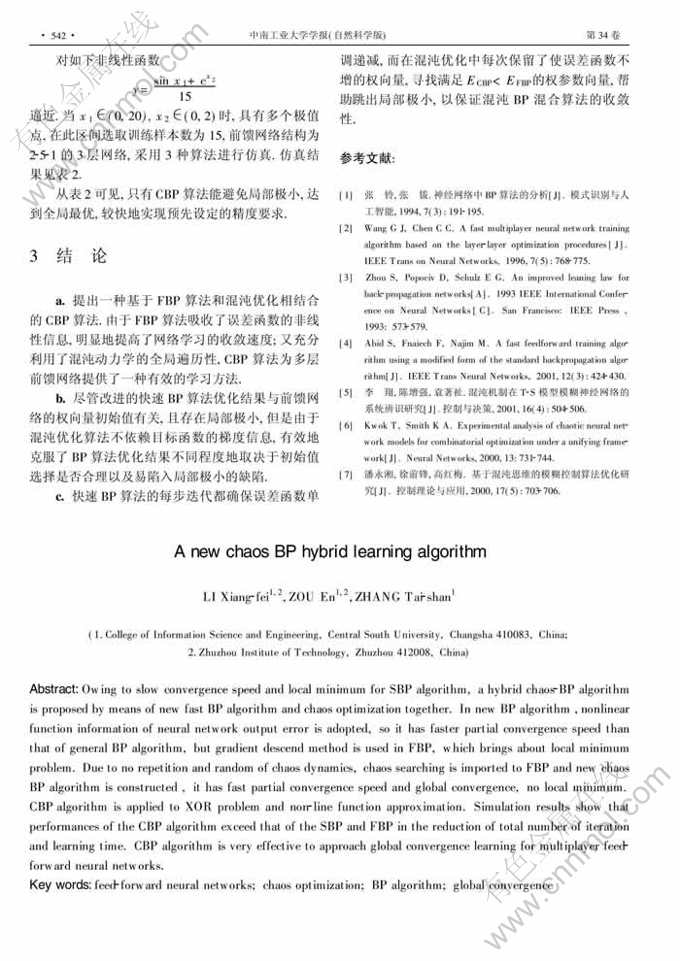 Key words:feed-forward neural networks; chaos optimization; BP algorithm; global convergence