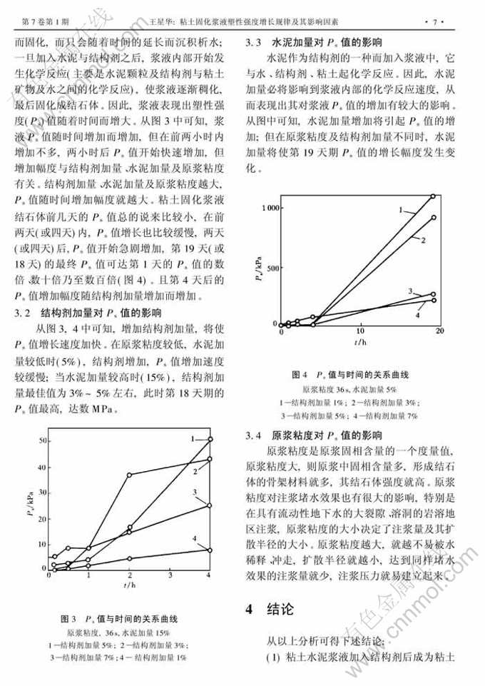 关键词:粘土固化浆液 初凝时间 塑性强度