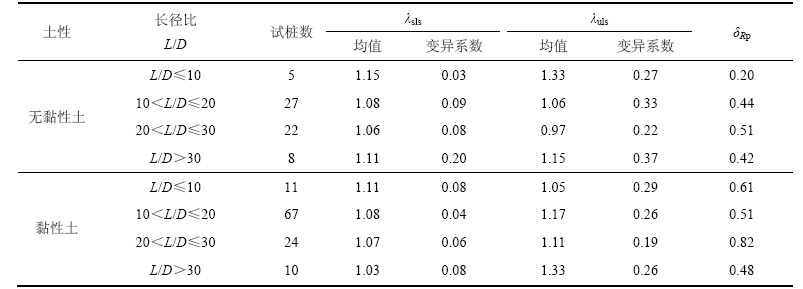 承载力模型因子是衡量桩承载力模型不确定性的常用指标,取为承载力试计比(桩承载力的实测值与计算值之比)[4-5],记为λuls: