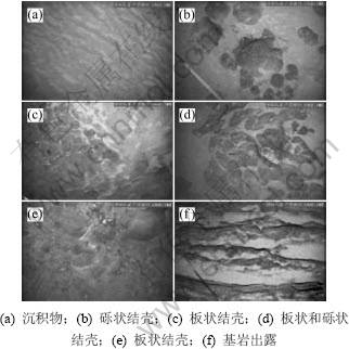 (4) 结壳主要发育带以下,沉积物或基岩岀露逐渐增多(如图3(f)),结壳岀露的概率不大,结壳视覆盖率较低。