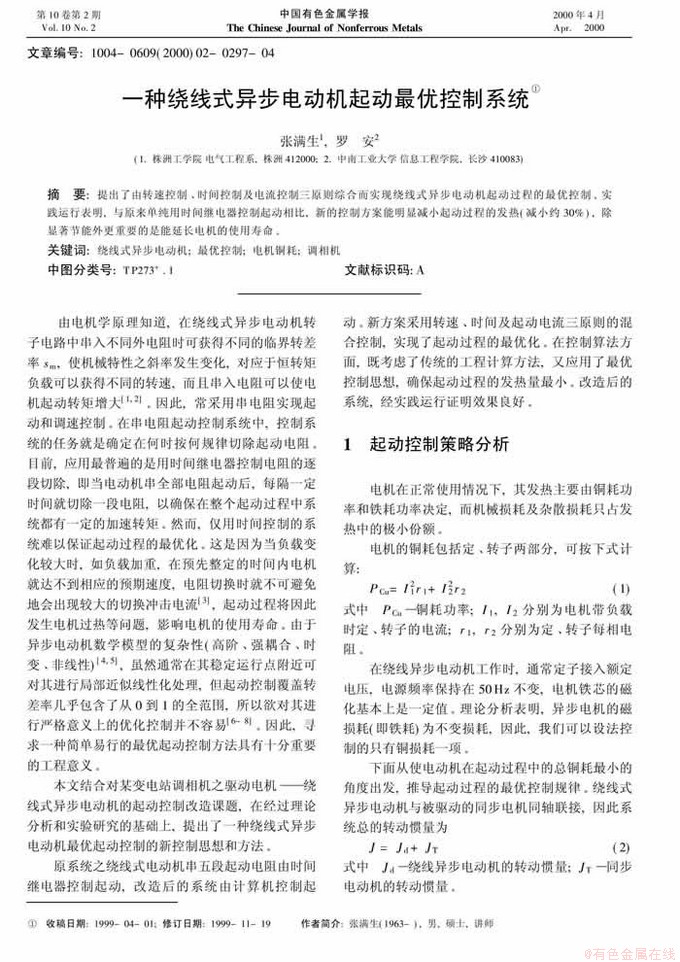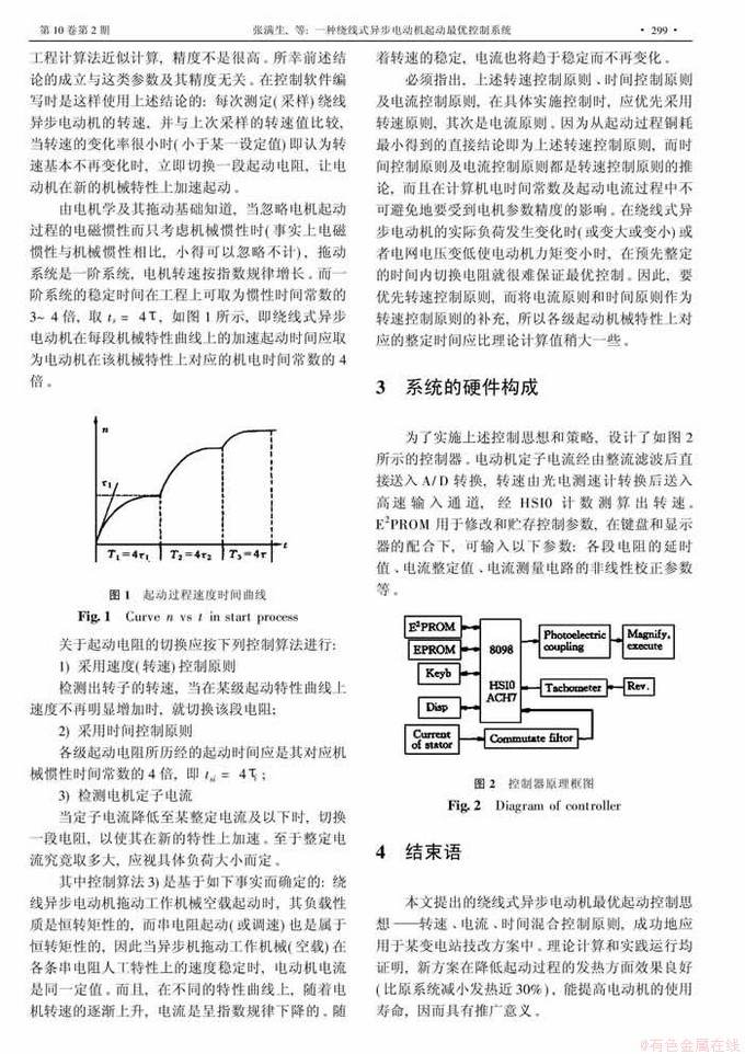 摘 要:提出了由转速控制、时间控制及电流控制三原则综合而实现绕线式异步电动机起动过程的最优控制。实践运行表明,与原来单纯用时间继电器控制起动相比,新的控制方案能明显减小起动过程的发热(减小约30%),除显著节能外更重要的是能延长电机的使用寿命 。