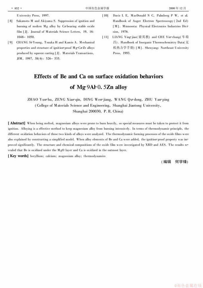 论文作者:赵云虎 曾小勤 丁文江 王渠东 朱燕萍