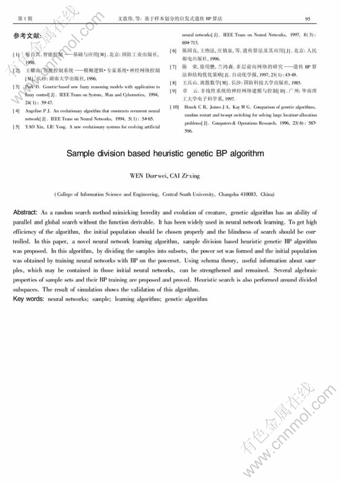 关键词:神经网络;样本;学习算法;遗传算法