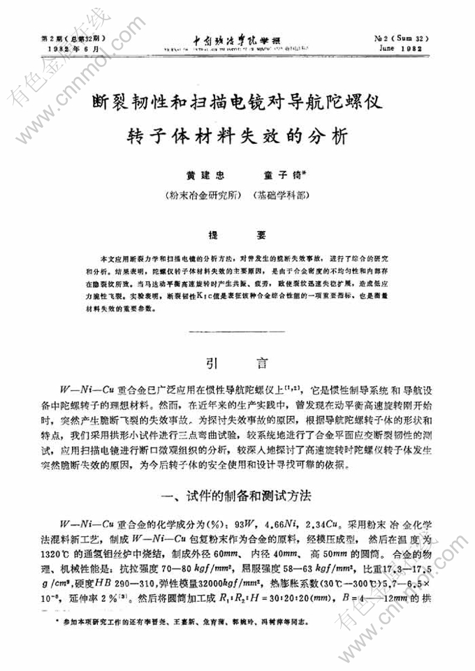关键词:应变断裂韧性; 扫描电镜; 陀螺仪转子; 材料失效; 重合金; 合金材料; 转子体; 表面裂纹; 断裂力学; 粘结相