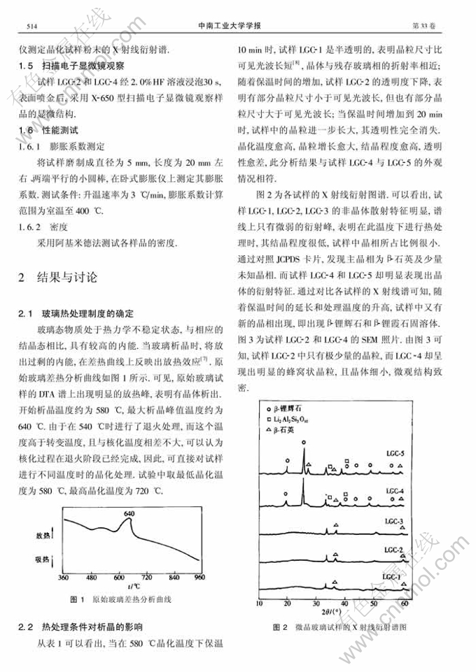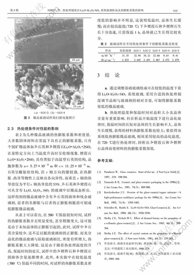 热处理制度对Li2O-Al2O3-SiO2系统玻璃析晶及热膨胀系数的影响