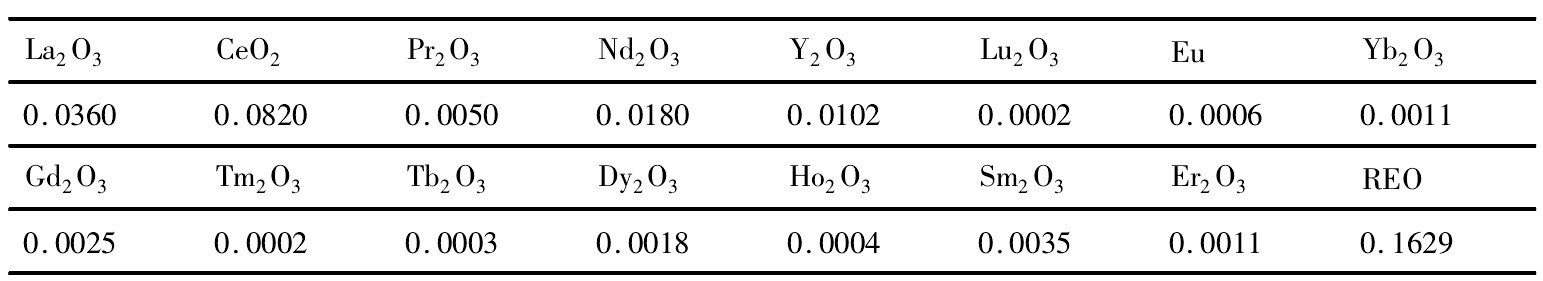 表2 赤泥中稀土元素含量(%)Table 2 Rare earth elements content of red mud(%)