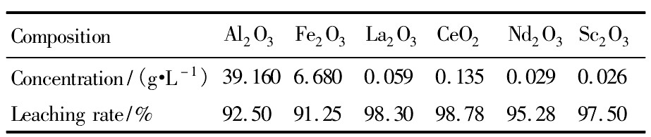 表2 赤泥中稀土元素含量(%)Table 2 Rare earth elements content of red mud(%) 下载原图