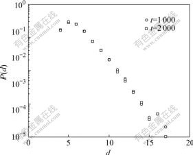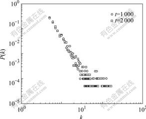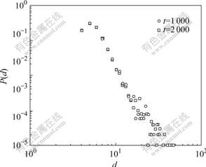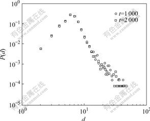Fig.2 Degree distribution of vertices (m=m0=5, m1=5)