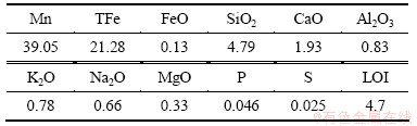 Table 1 Main chemical composition of high-iron manganese ore %