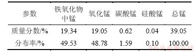 表1 铁锰矿主要化学成分分析结果(质量分数)