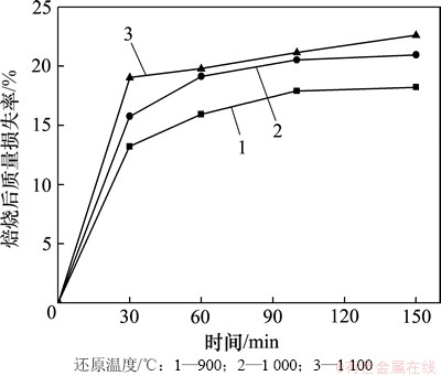 Fig. 2 Effect of temperature and time on burning loss rate of high iron content manganese