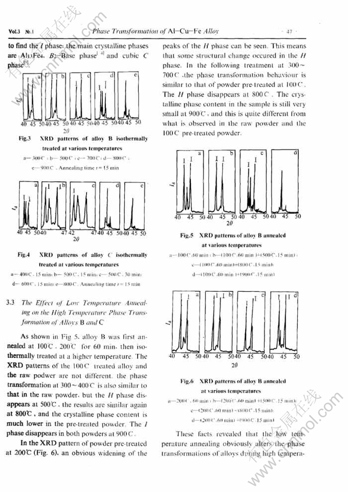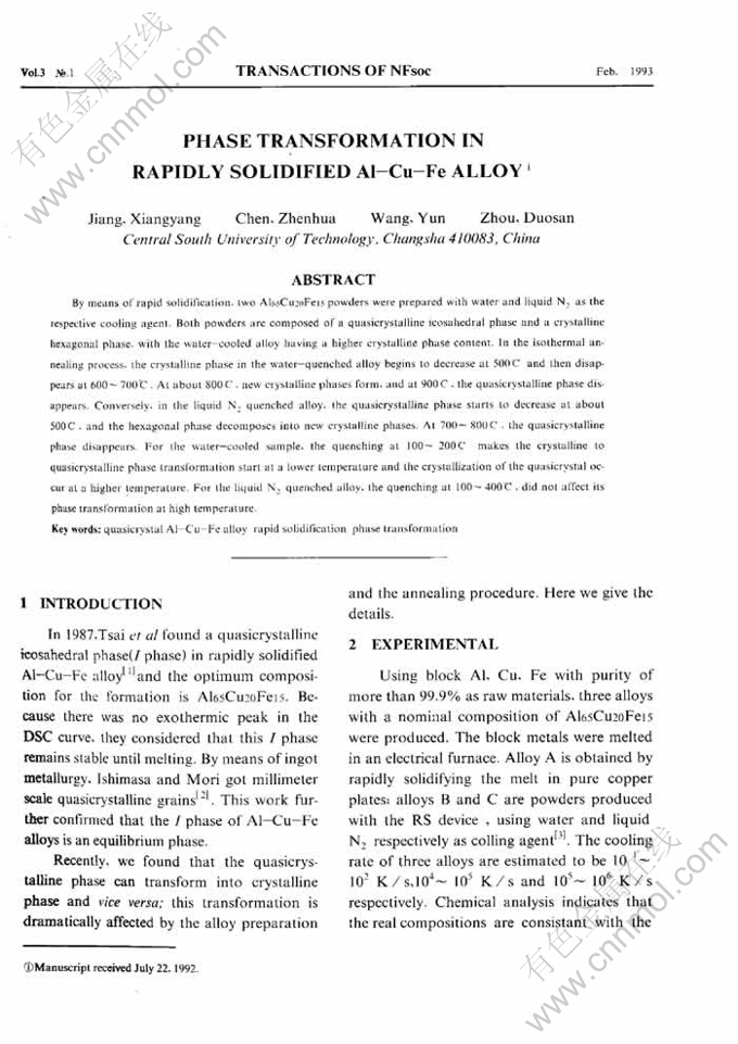 Key words:quasicrystal Al-Cu-Fe alloy; rapid solidification; phase transformation