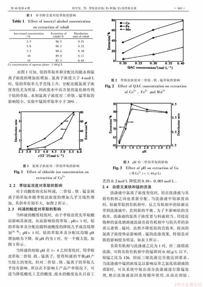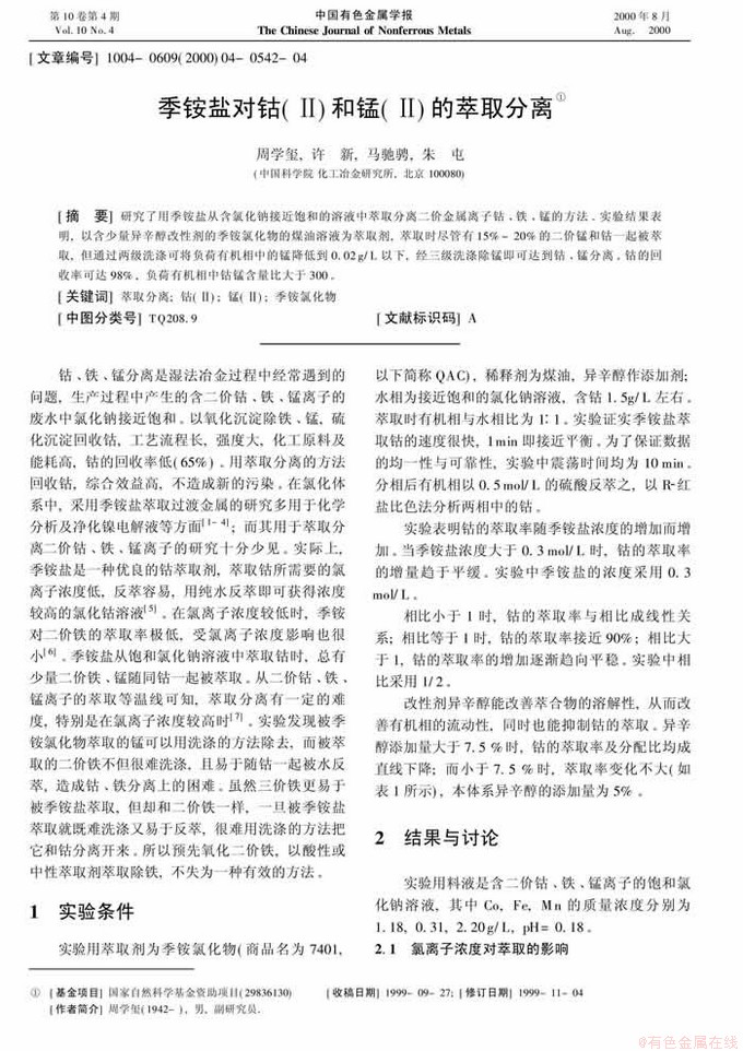 季铵盐对钴(Ⅱ)和锰(Ⅱ)的萃取分离