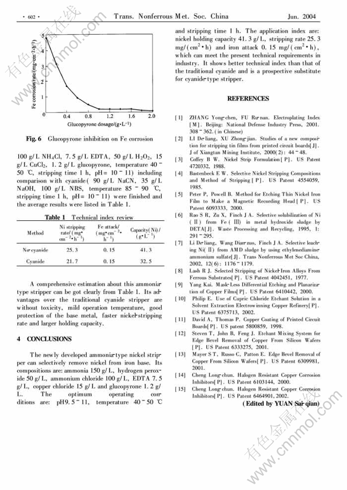 Key words:nickel stripping; non-cyanide composition; environment-friendly technology