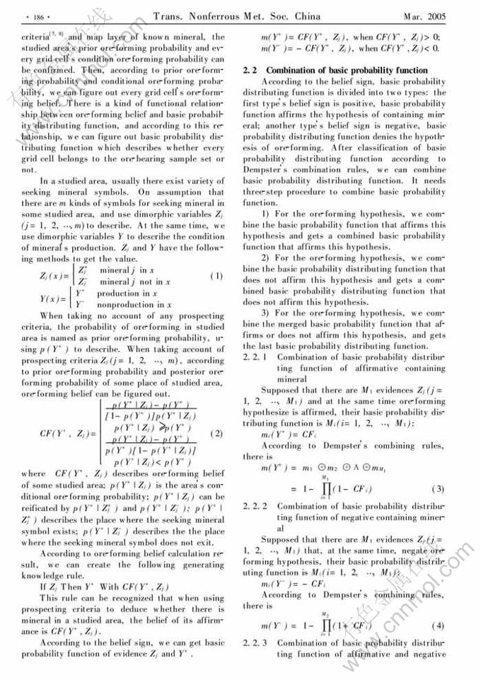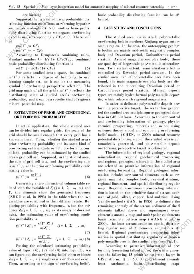 Key words:mineral resource potential; evidence theory model; mass of evidence model; synthetic ore-forming belief model; basic probability function
