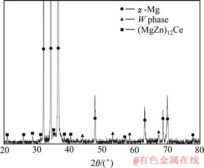 图1 铸态Mg-6Zn-1Y-1Ce合金的XRD谱